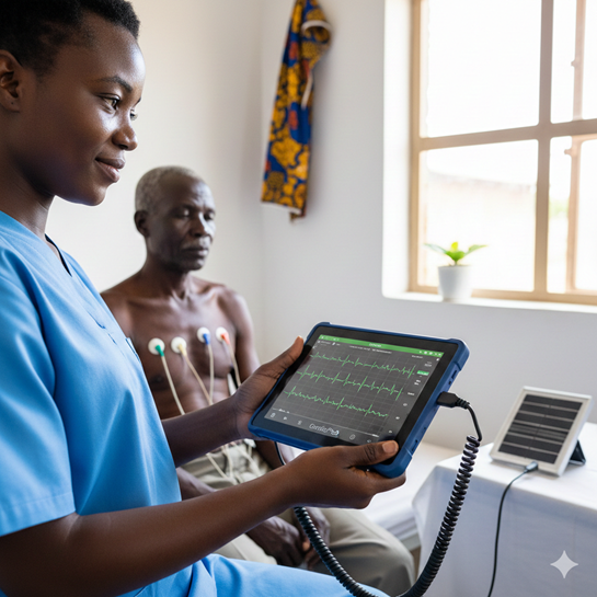 - The Interface: A touch-screen tablet that allows a non-specialist technician to perform an electrocardiogram (ECG) in any remote village.